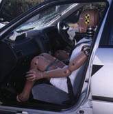 driver's side was comparatively small. The dummies remained securely restrained, and their posture was hardly changed after the collision. |