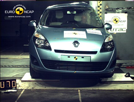 БЕЗОПАСНОСТЬ ВЗРОСЛЫХ :: The passenger compartment remained stable in the frontal impact. Dummy readings indicated generally good protection, with adequate protection for the chest of both front seat occupants. The knees, femurs and pelvis were well protected in the test and Renault showed that a similar level of protection would be available to occupants of different sizes and to those sat in different positions. Maximum points were scored in the side barrier test and the chest was adequately protected in the more severe side pole impact. Protection against whiplash injuries in a rear impact was rated as marginal. БЕЗОПАСНОСТЬ ПАССАЖИРОВ-ДЕТЕЙ :: In the dynamic tests, dummy readings of load and acceleration were not excessive. The head of the 3 year dummy did not move forward too far in the frontal impact and both dummies were properly contained by their restraints in the side impact. The passenger airbag can be disabled to allow a rearward facing child restraint to be used in that seating position. However, information provided to the driver regarding the status of the airbag is not sufficiently clear and the system was not rewarded. СТОЛКНОВЕНИЕ С ПЕШЕХОДОМ :: The bumper scored maximum points for providing good protection to pedestrians' legs. However, the front edge of the bonnet did not perform so well and was rated as predominantly marginal. The bonnet offered poor protection in most areas likely to be struck by the head of a child or an adult. СИСТЕМЫ БЕЗОПАСНОСТИ :: Electronic Stability Control (ESC) is standard equipment in most European countries but is optional in some. Sales of the Grand Scenic with ESC as standard are expected to exceed Euro NCAP's fitment requirements for 2009. The same is true of the speed limitation device, a driver-set system which actively prevents excess speed. The car is also equipped with a seatbelt reminder system for front and rear seats. ![]() ![]() ![]()