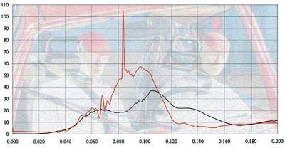 Подсчет суммарного замедления головы водителя показал, что максимальное значение перегрузки достигло 94 g (g - это ускорение свободного падения). Но это еще не так страшно, поскольку