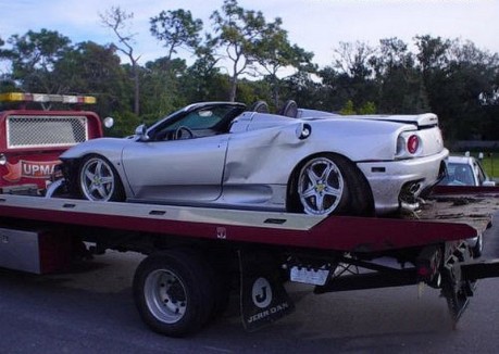 Ferrari 360 Spider был разбит через три месяца после покупки. Владелец рассказал полиции, что авария произошла из-за того, что у машины якобы вышло из строя рулевое управление