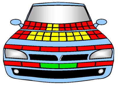 PEDESTRIAN PROTECTION :: The bonnet surface and its front edge were rated as predominantly poor for the protection they offered to the head and legs of a struck