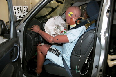 SIDE IMPACT :: In the side impact, forces were transferred in an unrealistic manner to the test dummy, reducing the forces recorded by the instrumentation in its chest.