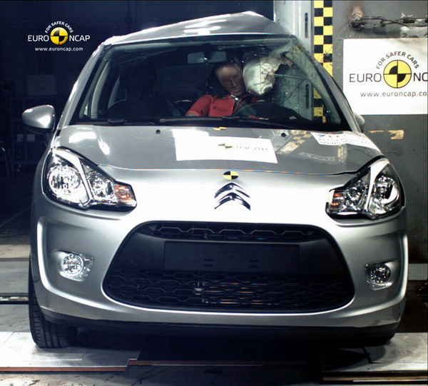 БЕЗОПАСНОСТЬ ВЗРОСЛЫХ :: The passenger compartment remained stable in the frontal impact. Dummy readings indicated good protection of the front occupants' knees and femurs. Citroen were able to demonstrate that occupants of different sizes, and those sat in different positions, would be offered a similar level of protection. In the side barrier impact, the car scored maximum points, good protection being provided to all vulnerable body areas. In the more severe side pole test, rib deflections indicated weak chest protection but other body areas were well protected. The seat and head restraint provided poor protection against whiplash injuries, scoring no points in the most severe of the three tests performed. БЕЗОПАСНОСТЬ ПАССАЖИРОВ-ДЕТЕЙ :: In the frontal impact, forward movement of the 3 year dummy's head was not excessive and the heads of both dummies were contained by the restraints in the side impact. The passenger airbag can be disabled to allow a rearward facing child restraint to be used in that seating position. However, information provided to the driver about the status of the airbag is not sufficiently clear. СТОЛКНОВЕНИЕ С ПЕШЕХОДОМ :: Good protection was provided to pedestrians' legs by the bumper and maximum points were scored. However, the front edge of the bonnet scored no points. The protection offered by the bonnet to a pedestrian's head was marginal or poor in those areas likely to be struck by a child and predominantly poor in those areas where an adult's head might strike. СИСТЕМЫ БЕЗОПАСНОСТИ :: Electronic Stability Control (ESC) is available on some variants in the model range but is not expected to be fitted as standard in sufficient numbers to qualify for points under Euro NCAP's rating scheme. A driver-set speed limitation device is expected to be fitted as standard to the great majority of cars sold and is an option on all variants in the range. A seatbelt reminder system for driver and front seat passenger is fitted as standard across the model range. ![]() ![]() ![]()