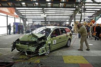 Жесткий и прочный пассажирский салон обеспечивает надежную защиту водителю и пассажирам. Ремни и подушки безопасности предохранили манекен водителя от удара головой и грудью о рулевое колесо. Надежная система защиты от бокового столкновения включает в себя встроенные в сидение боковые подушки безопасности и подушку для защиты головы (занавес). Автомобиль первым получил оценку в четыре звезды за защиту пассажиров-детей. |