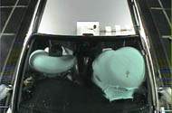 The collision energy was almost completely absorbed within the engine compartment. There was comparatively small deformation in the footwell area of both driver and passenger. The dummies remained securely restrained, and their posture was hardly changed after the collision. |