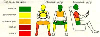водителя. Голеностоп подвергается риску из-за вмятой ниши для ног. БОКОВОЙ УДАР :: Голова манекена водителя слегка соприкоснулась с центральной стойкой двери. А вот на ребра пришлась серьезная нагрузка от вмявшихся двери и центральной стойки, - она превышает требования, предъявляемые к новым моделям в Европе с 1998 года. Таз и живот манекена водителя соприкоснулись с дверью и боковиной сидения. Защита области живота едва соответствует нормативным требованиям, безопасность таза оценена как хорошая. БЕЗОПАСНОСТЬ ПАССАЖИРОВ-ДЕТЕЙ :: Две пиктограммы указывают на опасность размещения ребенка спиной по ходу движения с включенной подушкой безопасности. Но пиктограмма на лобовом стекле со временем может стереться, а текстовые предупреждения отсутствуют вообще. СТОЛКНОВЕНИЕ С ПЕШЕХОДОМ :: Четверть зон возможного удара головой при столкновении с пешеходом соответствует нормам. Остальные зоны получили оценку ниже средней. Две точки на переднем крае капота и одна на бампере получили низкую оценку, остальные – неудовлетворительную. СИСТЕМЫ БЕЗОПАСНОСТИ :: Пятидверная модель появилась в 1994 году. В стандартную комплектацию модели, поставляемой на рынок ЕС, входят подушки безопасности водителя и пассажира, преднатяжители ремней безопасности и гидроусилитель руля. |