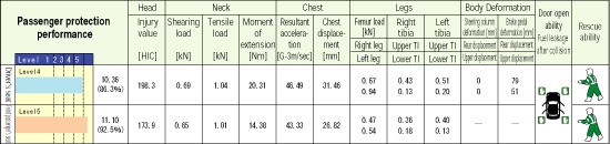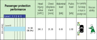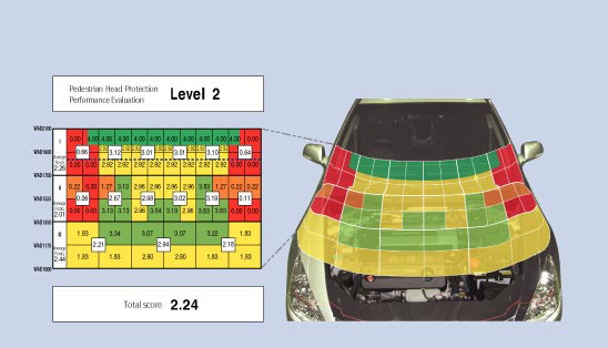 Figures in the chart of each vehicle model shows the score (HIC is converted to a score) in each area.
