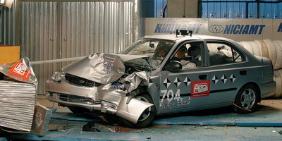 Лада Калина, Renault Logan, Renault Symbol... Все эти седанчики участвовали в летнем сравнительном тесте - и все прошли испытания не только на активную, но и на пассивную безопасность. Однако был в том тесте и четвертый участник - Hyundai Accent, российский бестселлер этого класса, выпускающийся в Таганроге уже четвертый год. А поскольку снимать Accent с конвейера пока не собираются, наше решение устроить ему встречу с деформируемым барьером на скорости 64 км/ч выглядит вполне логичным. |