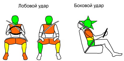 Защиту коленей, бедер и таза водителя и переднего пассажира нельзя назвать удовлетворительной: им угрожают жесткие элементы торпедо.