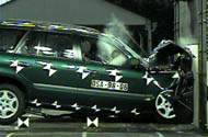 the footwell area of both driver and passenger. The dummies remained securely restrained, and their posture was hardly changed after the collision. |