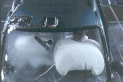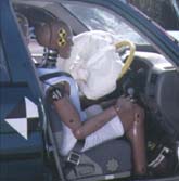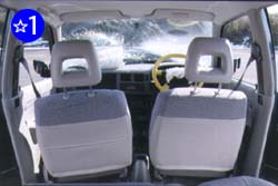 in the occupant compartment. Deformation of the body caused fairly significant shifting of the seats after the collision. The dummies were securely restrained and their posture were scarcely changed after the test. |
