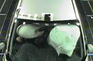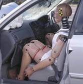 driver's side was comparatively small. The dummies remained securely restrained, and their posture hardly changed after the collision. |
