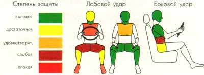 травму, не совместимую с жизнью. Травмоопасными для коленей и ног водителя являются жесткие элементы за торпедо, а также сильно сместившийся педальный узел. БОКОВОЙ УДАР :: В автомобиле нет боковых подушек безопасности. Однако грудная клетка защищена хорошо, несмотря на то, что ребра манекена водителя соприкоснулись с дверью. Удар смягчила конструкция сидения с амортизирующей вставкой. БЕЗОПАСНОСТЬ ПАССАЖИРОВ-ДЕТЕЙ :: Детское кресло фиксируется с помощью штатных ремней безопасности. Но одно из рекомендованных производителем кресел оказалось несовместимым с креплением ремня. Инструкции по установке кресла не отличаются ясностью, к тому же, устанавливая кресло, их можно и не заметить. При лобовом ударе кресла справились со своей задачей, хотя нагрузка на шею манекена младшего ребенка была слегка превышена. А вот при боковом ударе манекен трехлетнего ребенка подвергается риску получить травму головы. СТОЛКНОВЕНИЕ С ПЕШЕХОДОМ :: Эту часть теста можно считать не пройденной. Чуть лучшим эффектом амортизации, чем прочие зоны, обладают места возможного удара головы взрослого пешехода. Плохо себя показали передний край капота и бампер, на котором нет защитной накладки. СИСТЕМЫ БЕЗОПАСНОСТИ :: Автомобиль появился в Европе в 1995 году. В 1999 году производитель усовершенствовал систему подушек безопасности и сенсоров преднатяжителей ремней. В стандартную комплектацию входит подушка безопасности водителя, преднатяжители передних ремней безопасности и гидроусилитель руля. |