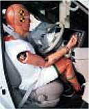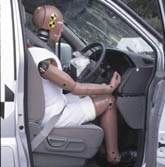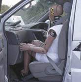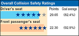 comparatively small deformation in the footwell area of both driver and passenger. The dummies remained securely restrained, and their posture was hardly changed after the collision, however, the seat fell foward due to deformation. Furthermore, upon impact the passenger seat door was pushed backward against the back seat door, and so, the door had to be opened with both hands. |