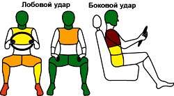чтобы жесткие элементы, располагающиеся под передней панелью и перед коленями водителя, могли нанести травму, однако замок зажигания представляет опасность. А вот пассажир может получить травму