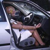 driver's side was comparatively small. The dummies remained securely restrained, and their posture was hardly changed after the collision. |