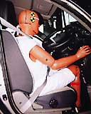 ЛОБОВОЙ УДАР :: Пассажирский салон сохранил свою структурную целостность при ударе. Защита шеи была признана «слабой», так как шея сильно согнулась назад. Жёсткие