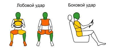 задача которых ограничить рывок корпуса человека вперед во время аварии. На ремнях также установлены ограничители натяга, тем не менее, датчики манекенов зафиксировали повышенную нагрузку на