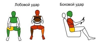 автомобиля, а также зоны, располагающиеся на одной линии с внутренними краями фар, также являются наименее травмоопасными. |