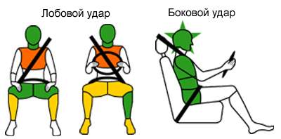 ЛОБОВОЙ УДАР :: Особенно хорошей защитой отличается область коленей. В автомобиле имеется коленный буфер, который срабатывает при нагрузке. А вот рулевая колонка может