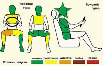 колеса только усугубило положение водителя. В автомобиле предусмотрен поэтапный буфер для защиты колен. Первый этап предназначен для защиты водителей, пристегнутых ремнем безопасности, а задача