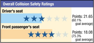 Figures in the chart of each vehicle model shows the score (HIC is converted to a score) in each area.