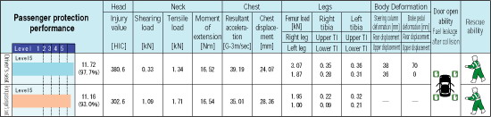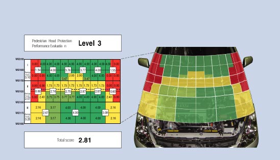 Figures in the chart of each vehicle model shows the score (HIC is converted to a score) in each area.