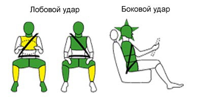 она смещается от водителя горизонтально назад, создавая пространство для защиты грудной клетки водителя. Адаптирующиеся ремни безопасности с ограничителями функционируют по-разному в