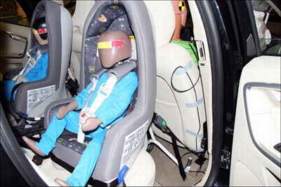 БЕЗОПАСНОСТЬ ПАССАЖИРОВ-ДЕТЕЙ :: Оба детских манекена были расположены в креслах, закрепленных против движения автомобиля. Максимум баллов получил автомобиль за защиту